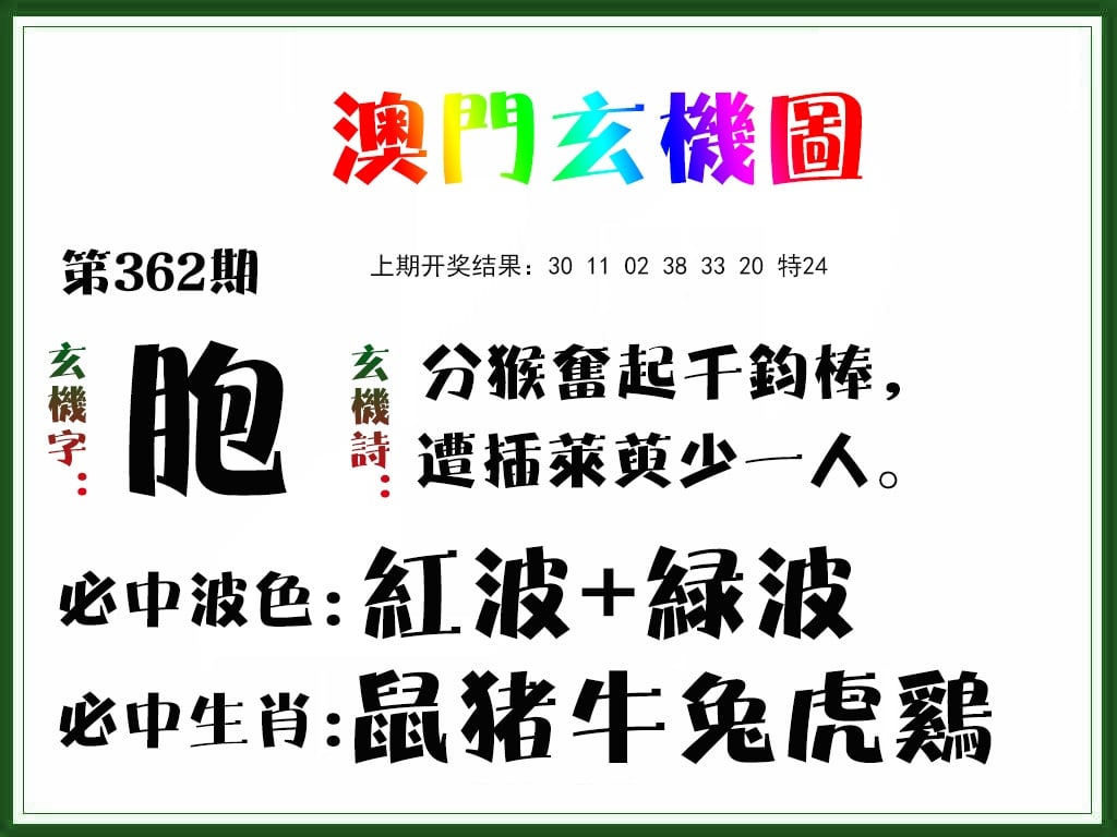 | 361期: ④肖 | 鼠猪牛猴 | ????中 |